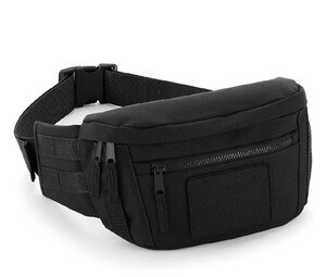 Military belt bag in durable 600D polyester for heavy-duty use. This practical accessory offers a 3-liter capacity and tactical MOLLE functionality. Designed by Bagbase, the BG842 model is built for longevity with high-resistance fibers. It features a secure main zippered compartment and a front pocket for extra storage. The MOLLE webbing provides a professional tactical look, while the TearAway label and interchangeable Rip-Strip™ patch make it an excellent canvas for customization. Ideal for bulk purchase as promotional merchandise or as a blank minimalist hip bag for everyday wear.