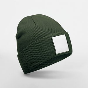 Beechfield B337R - Olive Green / White - Beanie with appliqué patch