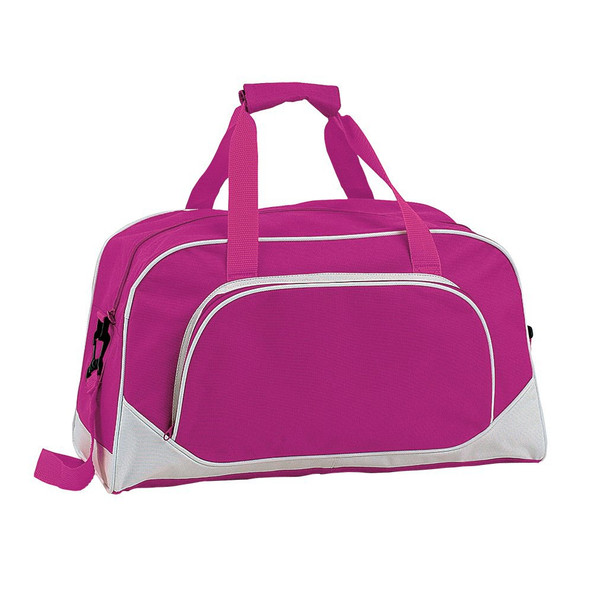 Multi purpose bag in resistant polyester 600D of bold bicolored design in a wide range of tones, with reinforcement piping and base in white color. Main compartment and outside pocket with matching color zipper closure. With resistant matching color nylon handles velcro closure and adjustable shoulder strap with double carabiner closure.