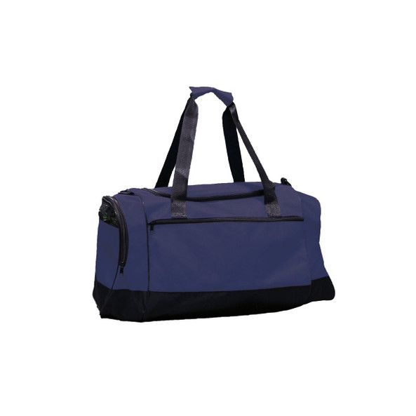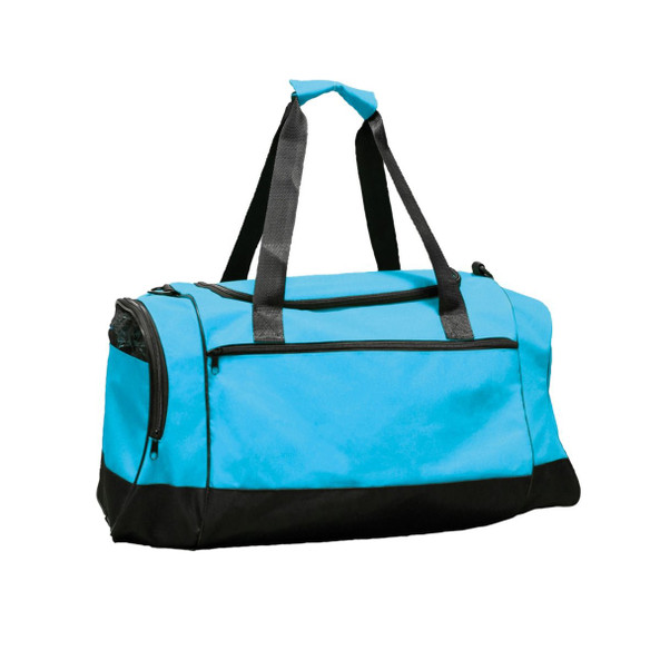 Sports bag with large main compartment with U-shape zipper closure. Front pocket with zip. Side pocket with mesh detail. Another one side pocket. Reinforced handles and adjustable shoulder strap.