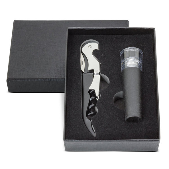 Claps 76058 - Black - Premium Wine Set with Corkscrew and Pourer Cap