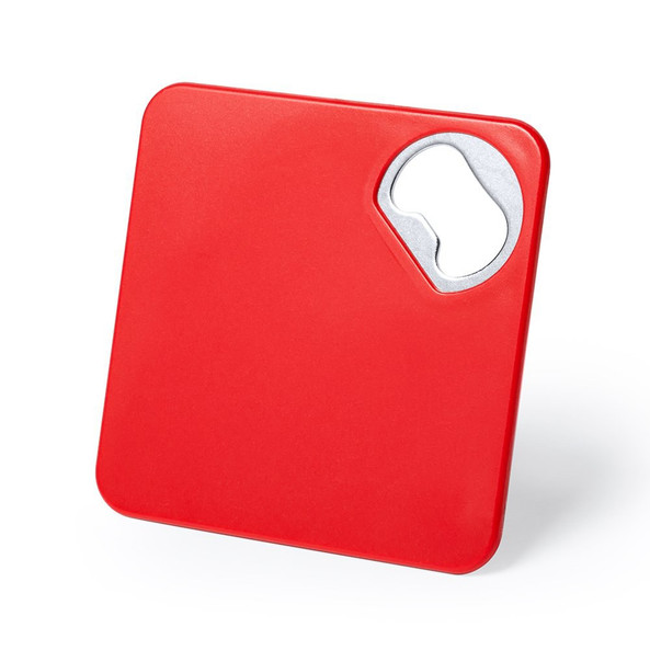 Original coasters with built-in metal opener in a wide range of bright tones. With non-slip surface on the base.