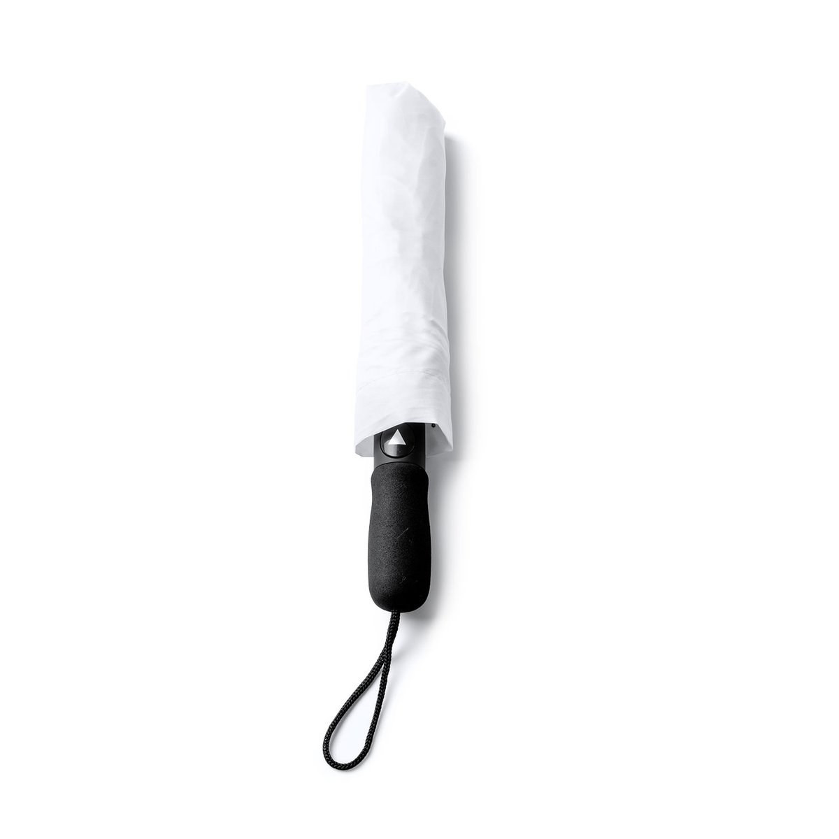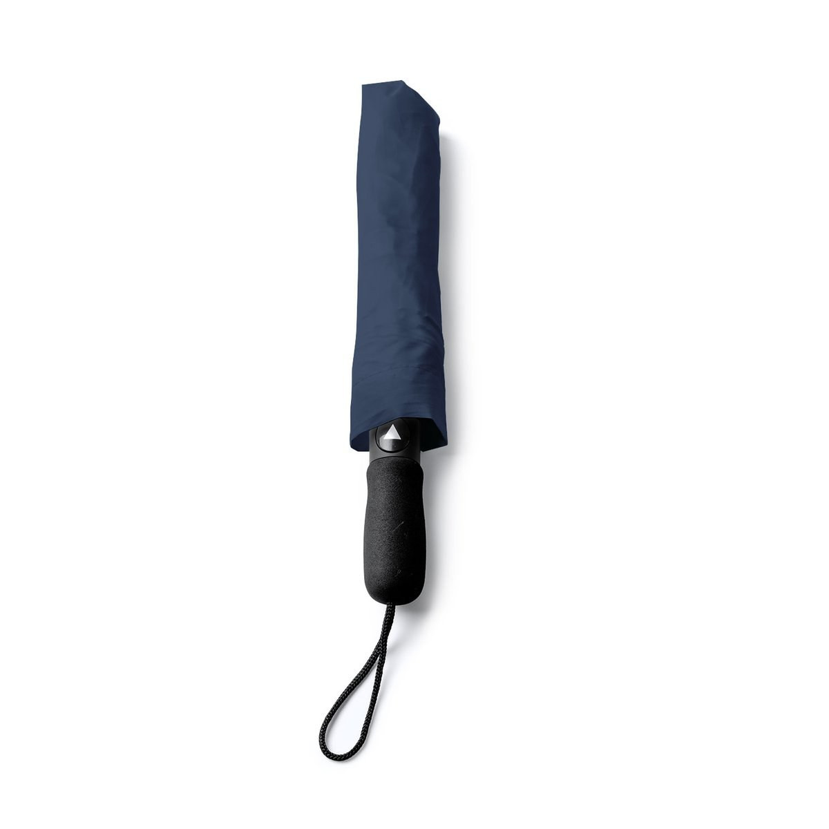 Foldable umbrella with automatic opening. 190T pongee fabric with matching pouch. EVA handle and black metal ribs.