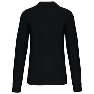 Ribbed neck with cross shape cover stitch.