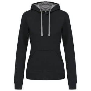 Kariban K465 - Black / Fine Grey - Ladies’ contrast hooded sweatshirt
