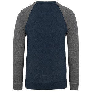 This two-tone organic raglan sleeve sweatshirt for men is available in various sizes from S to 3XL and in 4 different colors.