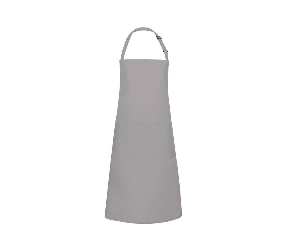 This basic bib apron with buckle and pocket KYBLS5 from Karlowsky is the perfect work accessory. With flap, it effectively protects against flour, soil and other messy materials; ideal for you as a baker, pastry cook, gardener... It comes with a strap with sturdy buckles , and a front patch pocket with two compartments , to store essential materials and personal items. It comes in one size only ; with about twenty colors, from the darkest to the flashiest.