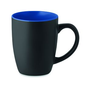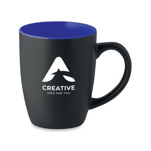 Black matt ceramic mug with shiny coloured inside.