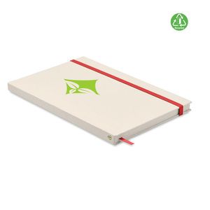 A5 notebook with hard cover made of 70% recycled milk carton pack and 30% recycled paper.