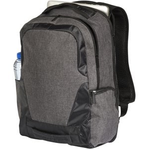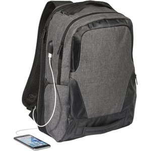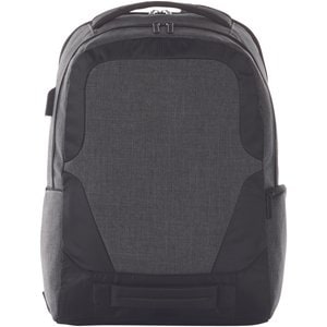 A sleek, 17" laptop backpack with USB port and cable. Equipped with RFID protection in side pocket, additional zippered pockets and a trolley strap on the back. The top and front grab handles and padded shoulder straps make it easy to carry around. There may be minor variations in the colour of the actual product due to the nature of the fabric dyes, weaves, and printing.