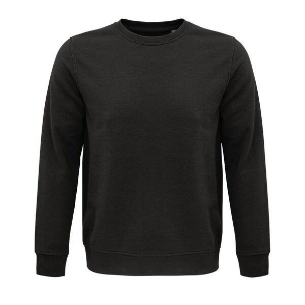 Unisex round neck sweatshirt in organic cotton and recycled polyester for premium warmth and comfort. This 280 gsm sweatshirt features a 100% cotton outer face, making it the perfect canvas for high-quality customization. The interior is lined with a soft French terry texture, providing excellent protection during colder seasons. Designed with a versatile cut and set-in sleeves, it offers a professional finish suitable for both corporate uniforms and casual streetwear. Whether purchased blank for a minimalist look or in bulk for custom projects, this sweatshirt ensures durability and style through its eco-friendly manufacturing process.