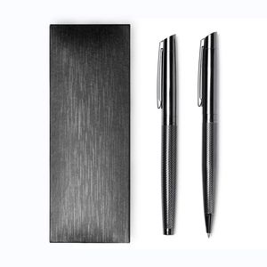 Roller pen and ball pen set in metal and carbon fibre with twist mechanism