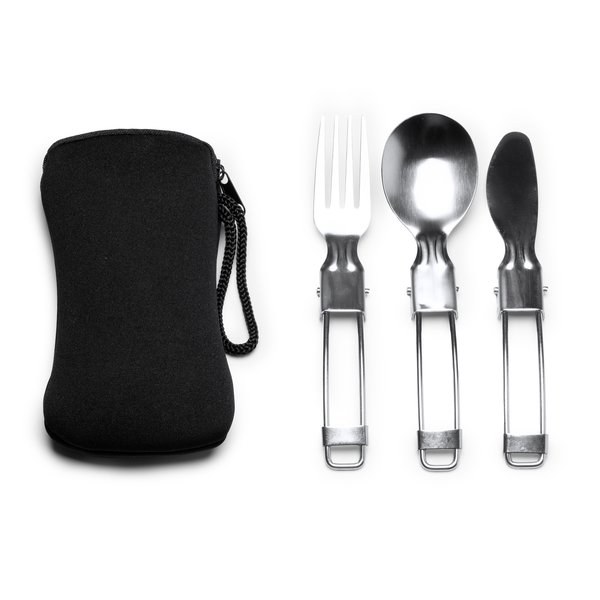 TINKER Stainless steel folding cutlery set with practical neoprene case