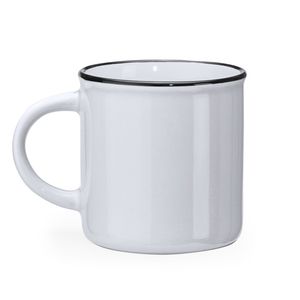 Retro style ceramic mug with round handle.