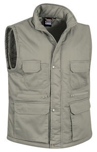 Multi-Pocket Work Vest: Our best-selling vest is a great value for money and comes in a wide range of colours and sizes. Made of a sturdy cotton twill fabric blended with polyester outer fabric for strength and durability, smooth inner lining and inner quilting for ensuring excellent thermal insulation. Stand-up collar with full-zip flap and snap button front closure, which provides warmth and comfort. Elasticated waistband and armholes for a secure and comfortable fit, adjustable waist with side snap button fastening for a better fit, a tailpiece that covers the lumbar zone for added comfort and also provides a large printing area.Two front gusseted pockets, two upper velcro flap pockets, two slanted pockets, two zippered pockets at intermediate height, a pen holder and an inner velcro pocket for a secure and convenient storage. Includes an inside back zip for easy marking with different methods: screen printing, embroidery, transfer printing, badges, shields, vinyl application. Ideal as workwear, uniforms and versatile use.