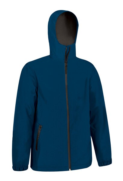 Hooded Waterproof Rain Jacket.Made of three-layered waterproof fabric: waterproof Ottoman outer fabric, breathable PU membrane and lightweight inner mesh lining that blocks water.Thermo-sealed seams and waterproofed zips that prevent water leaks.Elasticated cuffs and straight-cut waist with adjustable elastic drawstring and stopper for a better fit and added comfort. Stand-up hooded collar with full-zip front closure for warmth and comfort, two slanted zippered waist pockets for a secure and convenient storage. Suitable marking methods: screen printing, vinyl application, transfer printing.Ideal for outdoor activities, pairs well with the TRITON Rain Trousers.