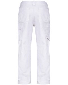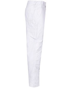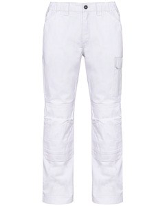1 pocket with flaps and velcro fastening on the left when worn, 1 double open tool pocket on the right when worn, 2 back patch pockets, 2 knee pad pockets in matching colour with velcro and flap inside to support and adapt the knee pad.
